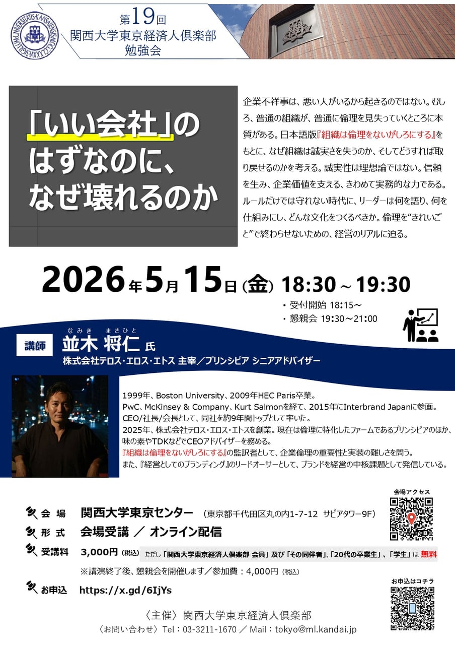 第19回 関西大学東京経済人倶楽部 勉強会(2026年5月15日実施)