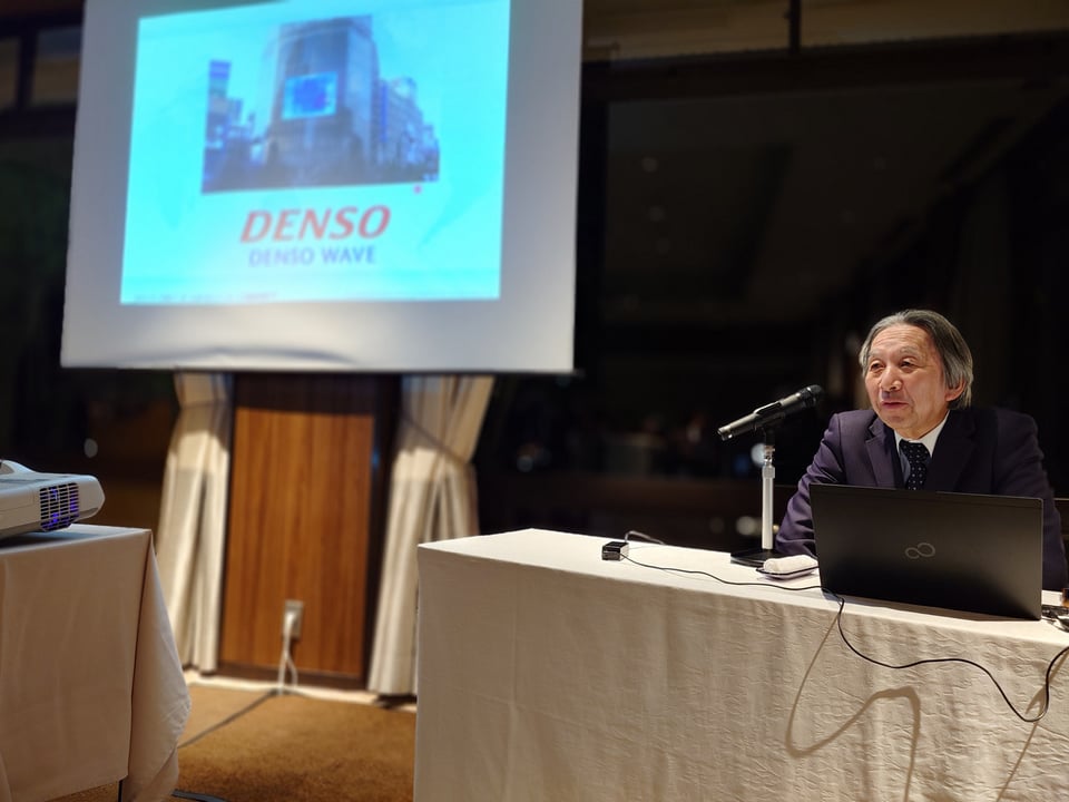 当日は交流会に先立ち、QRコードを開発した原 昌宏 様(法政大学名誉博士)をお招きし、講演会を開催。